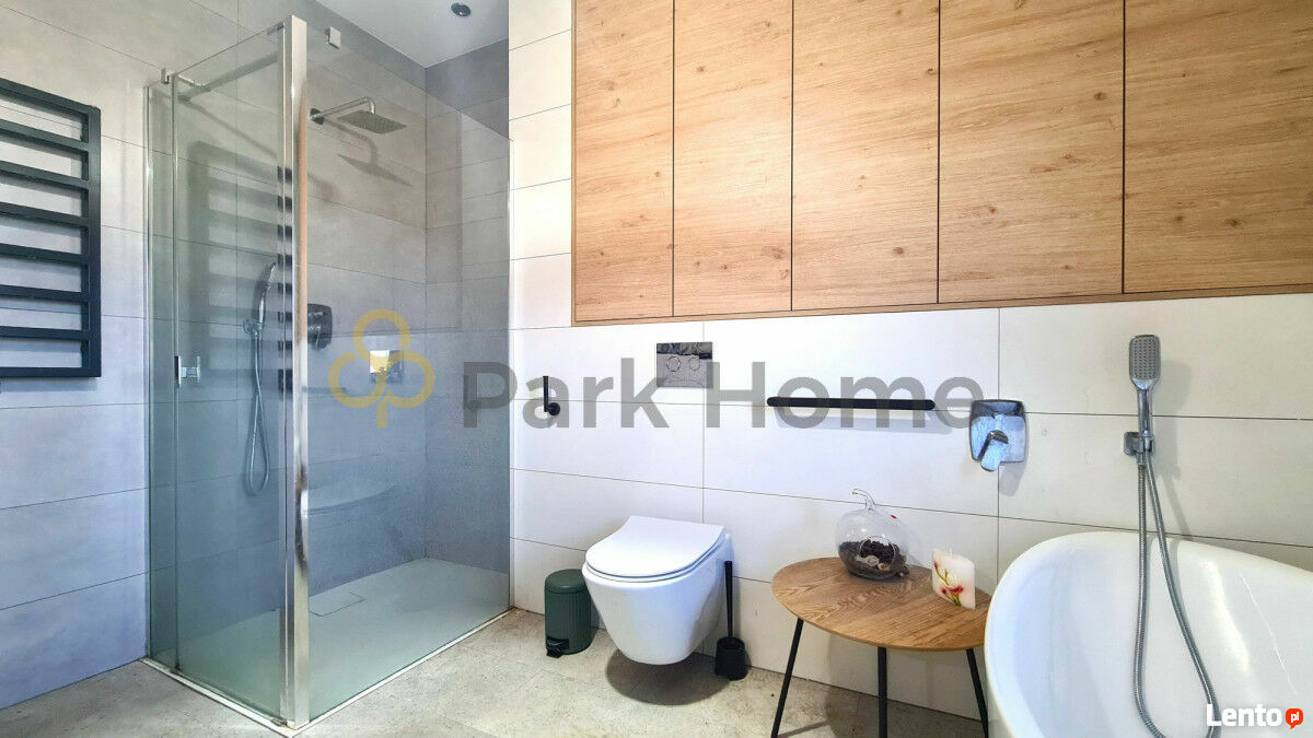- Duża łazienka wyposażona w wannę i prysznic.